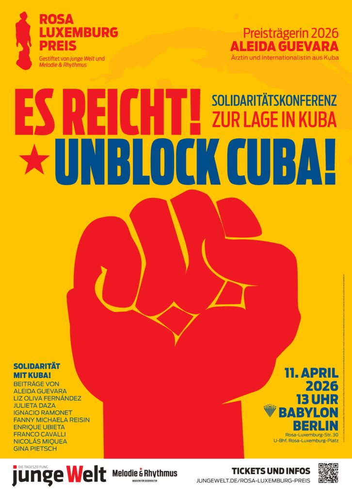 Unblock Cuba! Aufruf zur Solidarität gegen die mörderische Blockadepolitik der USAJedes Jahr wird anlässlich der UNO-Vollversammlung in New York über eine Resolution abgestimmt, welche die Aufhebung der von den USA seit fast 60 Jahren gegen die Insel verhängte Wirtschafts-, Handels- und Finanzblockade fordert. Seit Jahren wird sie von der überwiegenden Mehrheit angenommen, bei wenigen Gegenstimmen und Enthaltungen. Am deutlichsten 2016 mit 191:0, als sich selbst die Obama-Administration nicht gegen die Resolution aussprach. Seit Trumps Präsidentschaft hat sich die Situation auch in der UNO verschlechtert. In der letzten Abstimmung von 2025 brachten die USA neben Israel weitere Staaten zum Nein oder zur Enthaltung, jedoch bei einer noch immer überdeutlichen Annahme der Resolution von 165:7.Aufruf weiterlesen |